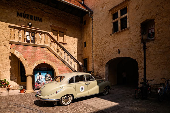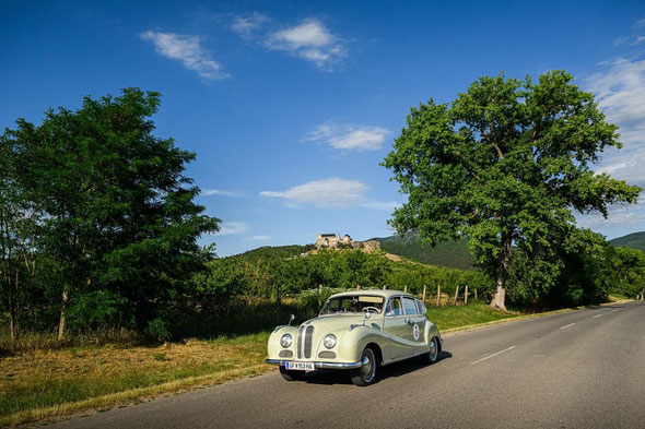 Die Strecke war für den BMW 501 V8 herausfordernd. Durchgehend 50er Schnitte, unerwartet viele Steigungen und Haarnadeln, in denen der gesamte Lenkeinschlag des 501ers erforderlich war. 1500 kg Lebendgewicht, Lenkradschaltung, klitschiges Lenkrad ohne Servo, weiche Sitzsofas, fehlende Klimaanlage und Trommelbremsen, auch ohne Servo, zu denen man erst einmal Vertrauen fassen musste. Das alles macht den 501er nicht gerade zu einem leicht zu bewegenden Rallyeauto, der aber mit seiner stoischen Verlässlichkeit glänzte.